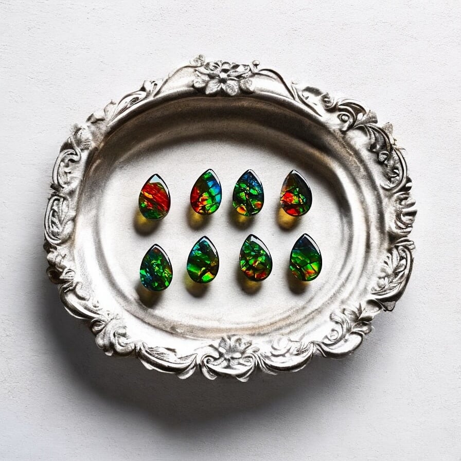 当店のアンモライトはトリプレットルース(表面保護をしているルース)です。