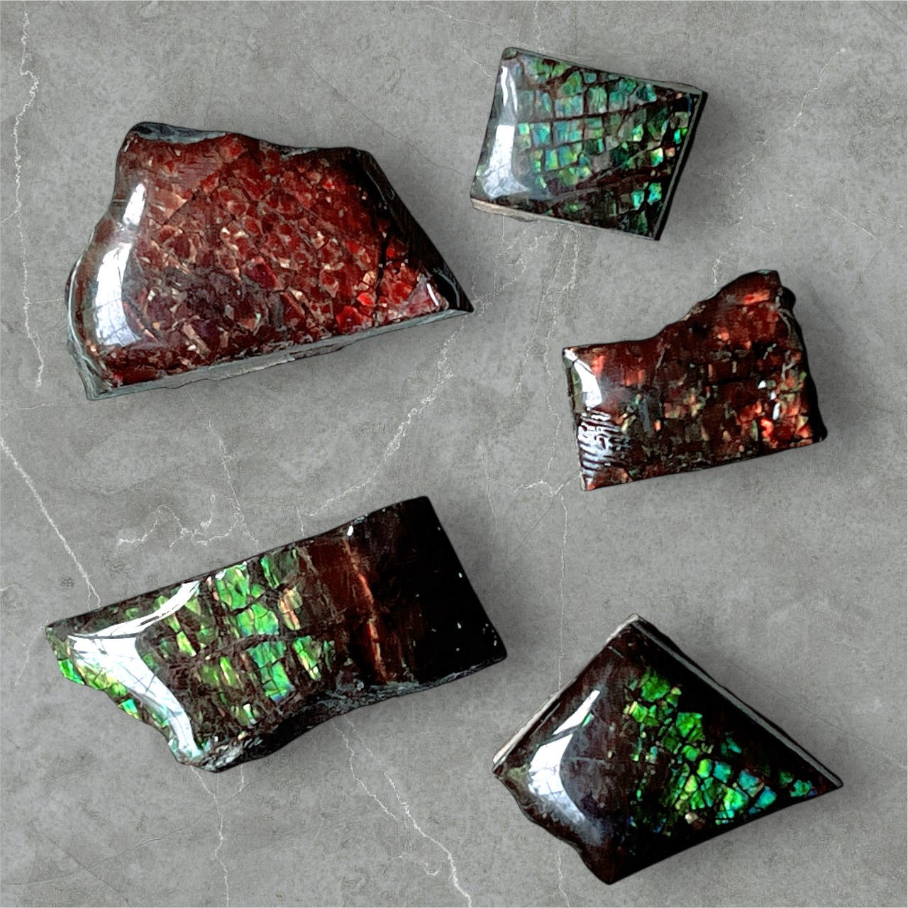 天然石 宝石 アンモライト(Ammolite)トリプレットルース モザイク AMMOZA-G 5個セット