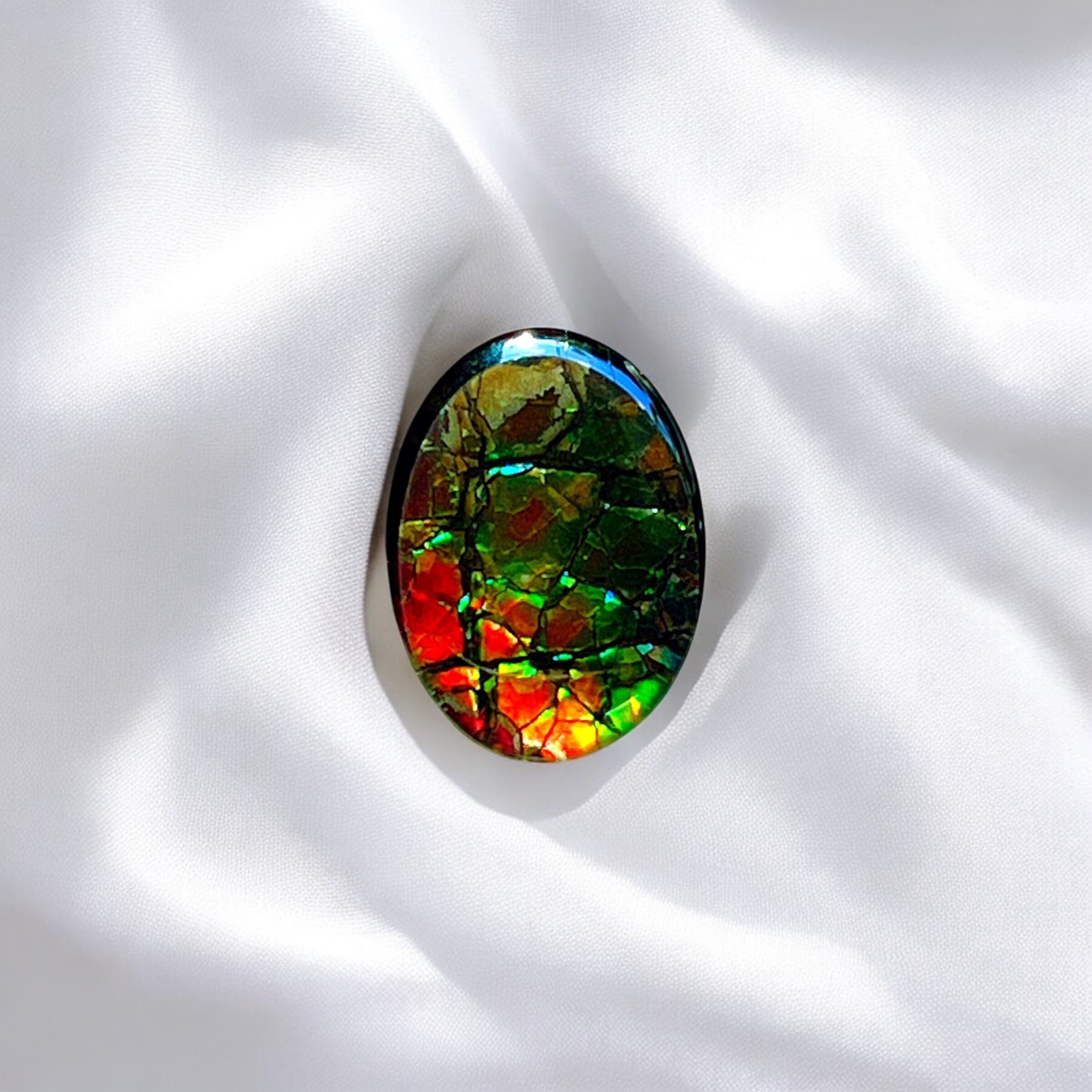 当店のアンモライトはトリプレットルース(表面保護をしているルース)です。