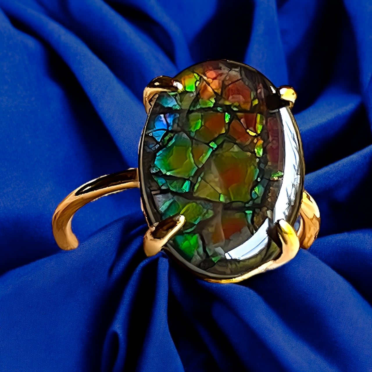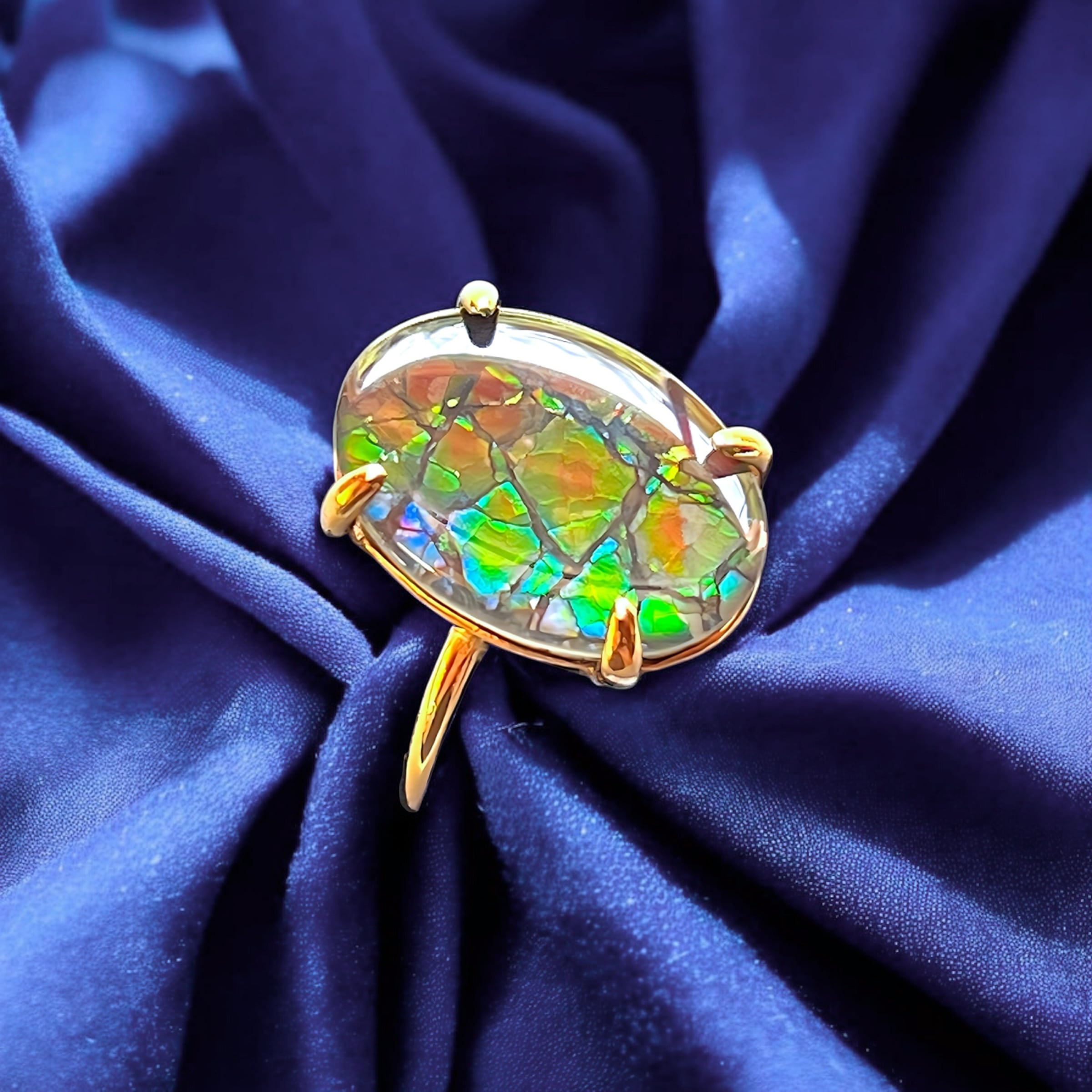 アンモライト(Ammolite) の1点物の限定ルースを使用したリング(指輪)です。