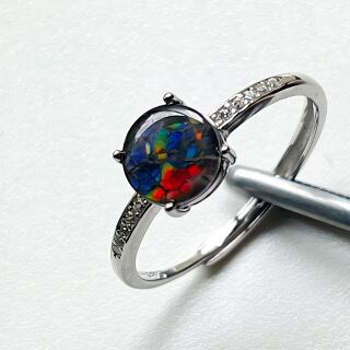 アンモライト(Ammolite) の1点物の限定ルースを使用したリング(指輪)です。