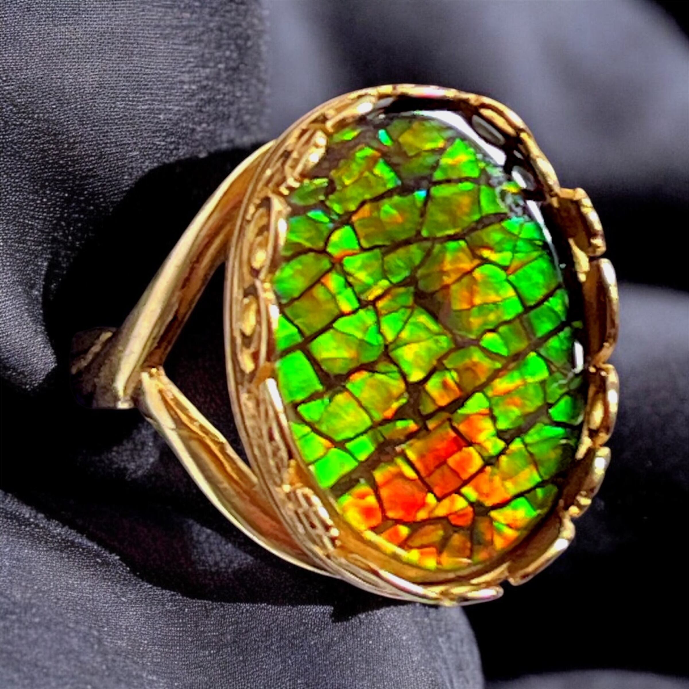 当店のアンモライトはトリプレットルース(表面保護をしているルース)です。