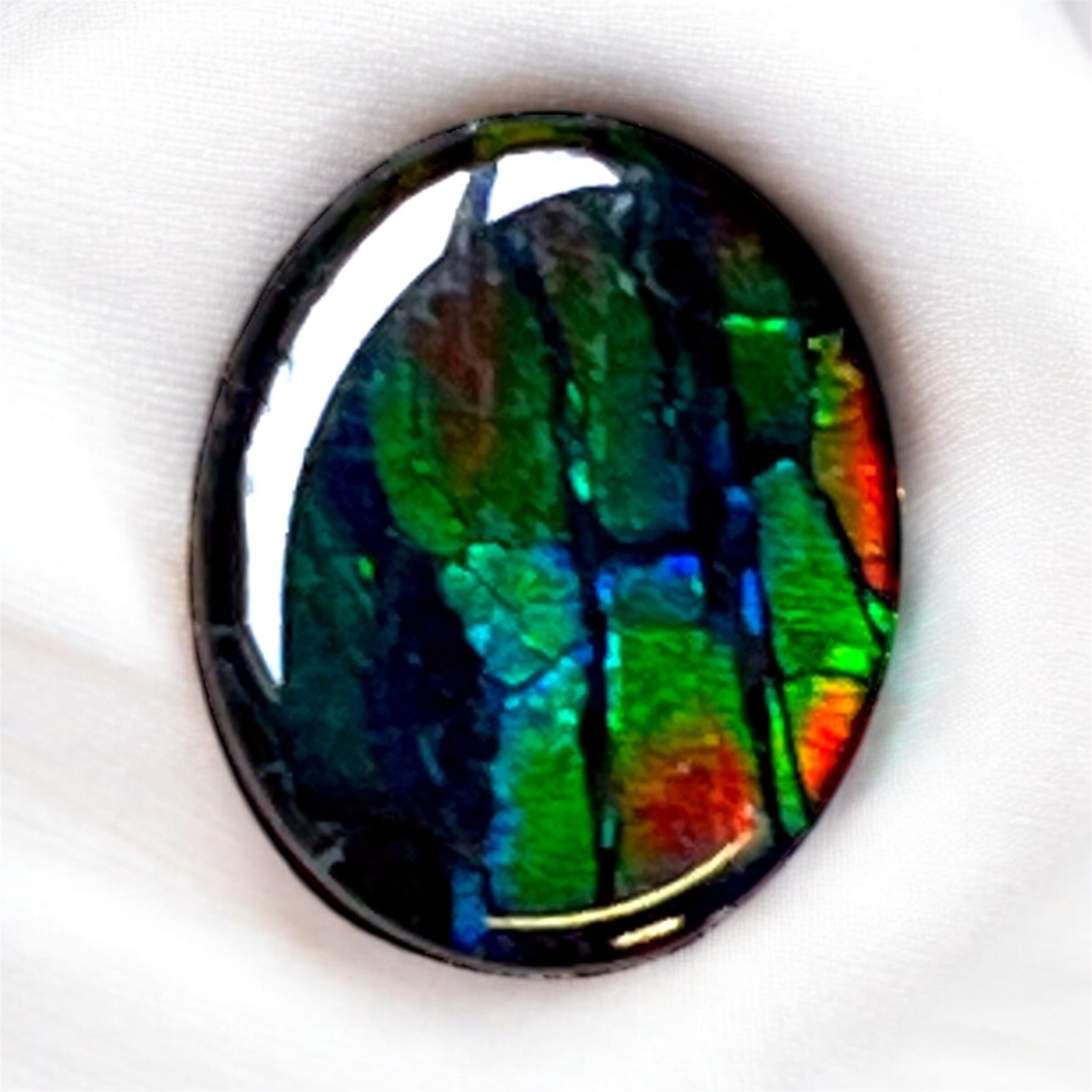 当店のアンモライトはトリプレットルース(表面保護をしているルース)です。